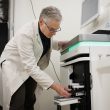 Eric Pierce using a NovaSeq 6000 machine in the lab. Niles Singer/Harvard Staff Photographer…